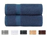 Todocama Lot de 2 Grands Serviettes de Bain 100% Coton 550 g/m² Extra Doux, très absorbantes et à séchage Rapide. Dimensions : 100 x 150 cm, Bleu Marine