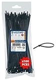 Velamp MG211 100x Attache, Colliers de Serrage en Nylon 6.6, Serre Cables, 200 mm x 3,6 mm, Résistants aux UV et à la Chaleur, Noir, 3,6 x 200